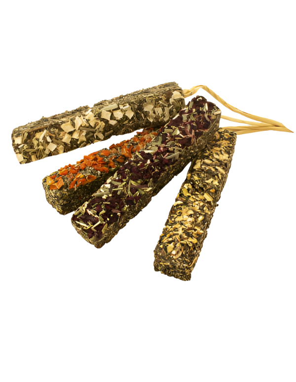 מארז חטיפים טבעיים בגודל XXL למכרסמים וארנבות ננסיות, מבוסס על תערובת עשבי שדה איכותיים בתוספת ירקות טעימים ובריאים. מעניק חוויית לעיסה ארוכה ומהנה, מספק תעסוקה טבעית ותורם לשמירה על שיניים חזקות. ללא דגנים, ללא תוספת סוכר וללא צבעי מאכל.