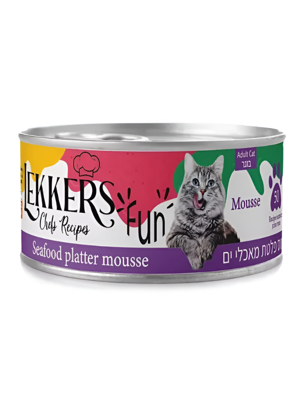 מעדן מוס איכותי לחתולים מבית LEKKERS, המשלבת טעמים מנצחים של פירות ים. שילוב הטעמים הייחודי יוצר ארוחה מפנקת ועשירה במיוחד, שגם חתולים בררנים מתקשים לעמוד בפניה.