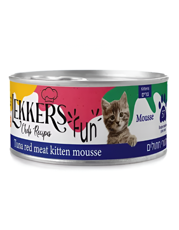 מעדן מוס איכותי לחתולים מבית LEKKERS, בטעם טונה במרקם שמתאים לגורים