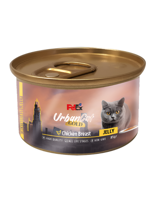 שימורים לחתול Urban Cat בג’לי חזה עוף 70 גרם מבית Urban Cat מציעים חוויית אכילה עדינה ועסיסית במיוחד בזכות נתחי חזה עוף איכותיים בג’לי רך, שמעניק מרקם קל לאכילה וטעם טבעי שחתולים אוהבים. סדרת השימורים של המותג מתמקדת בשימוש ברכיבים איכותיים וללא צבעים או חומרים משמרים מיותרים , ולכן המוצר נחשב טבעי יחסית ומתאים לחתולים בכל הגילאים—ובעיקר לחתולים בררנים, לחתולים מבוגרים או לכאלו עם מערכת עיכול רגישה הזקוקים למזון רך. מבחינה תזונתית, מדובר במזון משלים (Complementary Food) עם כ-7%–9% חלבון, כ-3%–5% שומן ולחות גבוהה של כ-82% התורמת להידרציה ולבריאות מערכת השתן, כאשר חלבון העוף ידוע כקל לעיכול ובמקרים רבים מתאים גם לחתולים עם רגישויות קלות (היפואלרגני ברמה חלקית בהתאם לחתול).